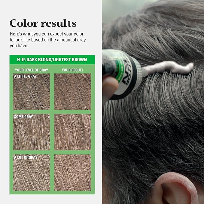 - Long-Lasting - Will not wash out; Lasts up to 8 weeks until the grey grows back; We know every man is different so our hair coloring product is here when those grey hairs begin to grow back