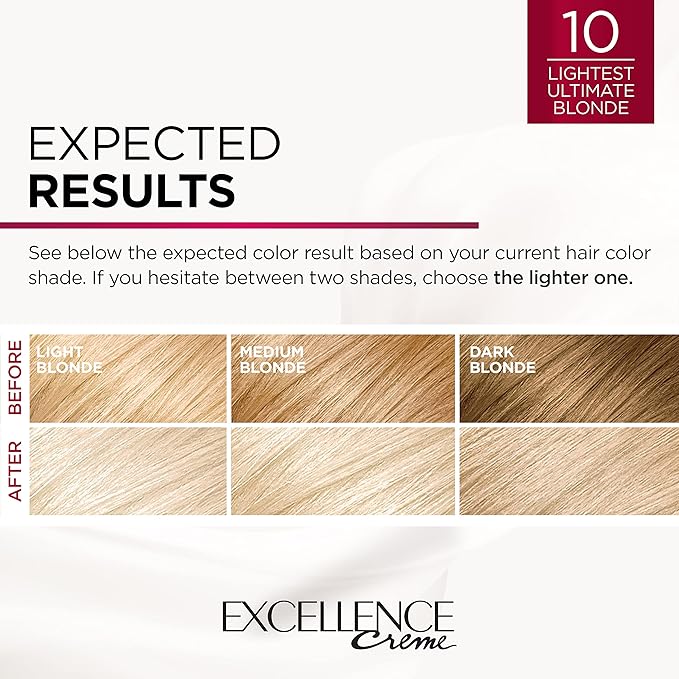 L'Oreal Paris Excellence Creme Permanent Triple Care Hair Color, 10 Lightest Ultimate Blonde, Gray Coverage For Up to 8 Weeks, All Hair Types, Pack of 1