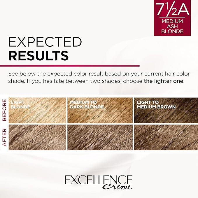 L'Oreal Paris Excellence Creme Permanent Triple Care Hair Color, 7.5A Medium Ash Blonde, Gray Coverage For Up to 8 Weeks, All Hair Types, Pack of 1