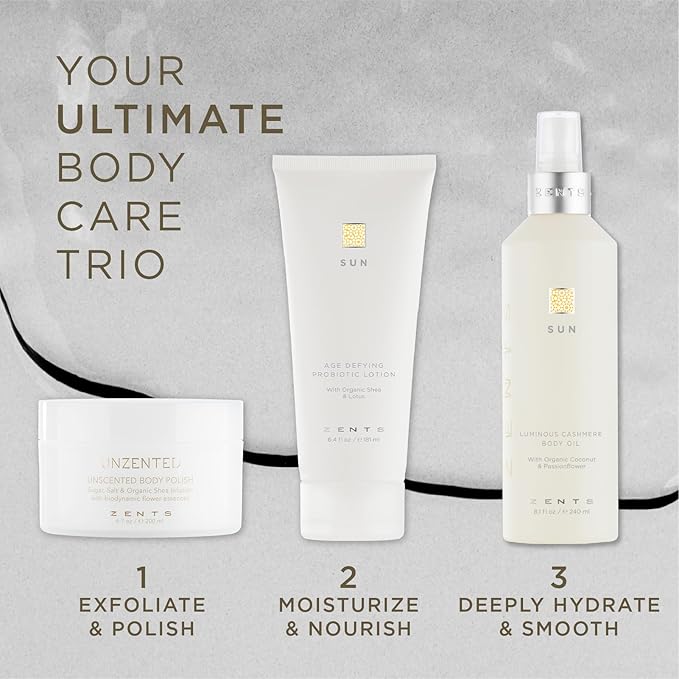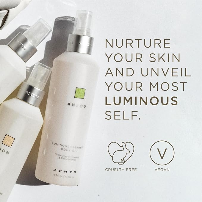 Zents Luminous Cashmere Body Oil (Sun Fragrance) | Moisturizing Body Oil with Vitamin E & Organic Coconut Oil | Softens & Smooths Skin | 8 fl oz