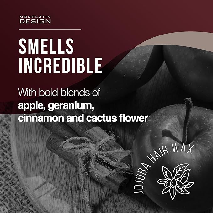 - WELL-BEING AND REFRESHMENT: Our Jojoba Hair Wax is suitable for all hair types, including thick and strong hair. It provides long-lasting moisture that penetrates your strands with every application. This scientifically-formulated wax combines jojoba extract and pure water, delivering a prolonged sense of moisture and a refreshing fragrance of a bold blend of apple, geranium, and cinnamon, with an infusion of cactus flower.