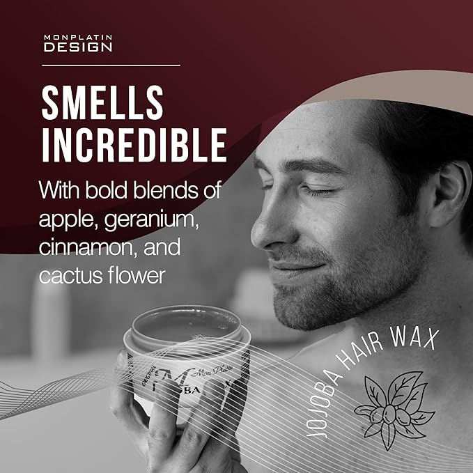 - NOURISHING TREATMENT: Say goodbye to dry, lifeless locks! Our Jojoba Hair Wax is not just your average styling product; it's a nourishing treatment that showers your hair and scalp with organic jojoba extract goodness and smells divine, it's the ideal choice for your daily styling routine. Mon Platin men’s hair wax is easy to rinse out and leaves no sticky or greasy feeling, No residue, just well managed hair.