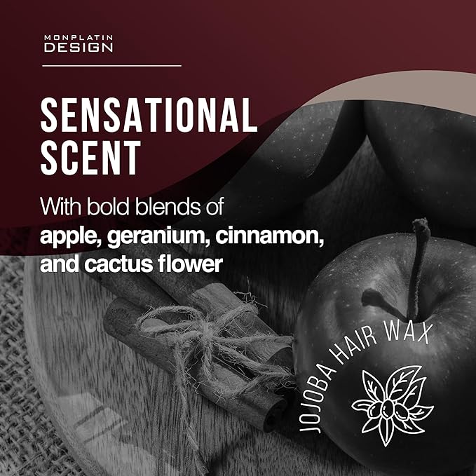 - NURTURE WITH NATURE: Our Jojoba Clay Hair Wax is suitable for all hair types, including thick and strong hair. It provides long-lasting moisture that penetrates your strands with every application. This scientifically-formulated wax combines clay and jojoba extract, delivering a prolonged sense of moisture and a refreshing fragrance of a bold blend of apple, geranium, and cinnamon, with an infusion of cactus flower.