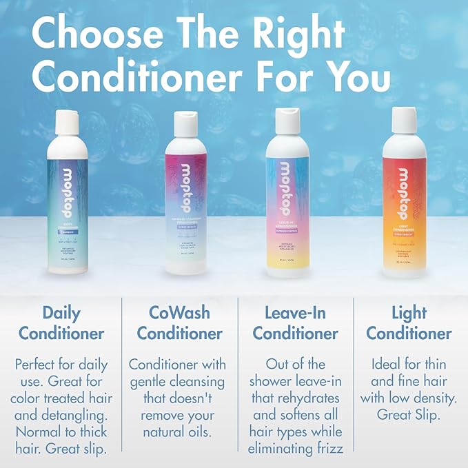 - RESTORE DRY DAMAGED HAIR: Our MopTop daily moisturizing conditioner is gentle for daily use and helps eliminate frizz while rehydrating and softening dry hair from root to tip. For dyed, straight, wavy, thin, coily, or curly hair care.