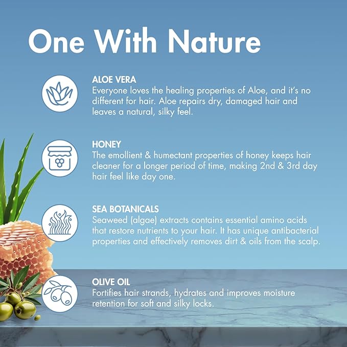 - INFUSED WITH NATURE: This hair conditioner for women and men with powerful botanical ingredients derived from nature, including aloe, sea botanicals, honey, and olive oil, enhancing your hair’s natural shine, slip and softness.