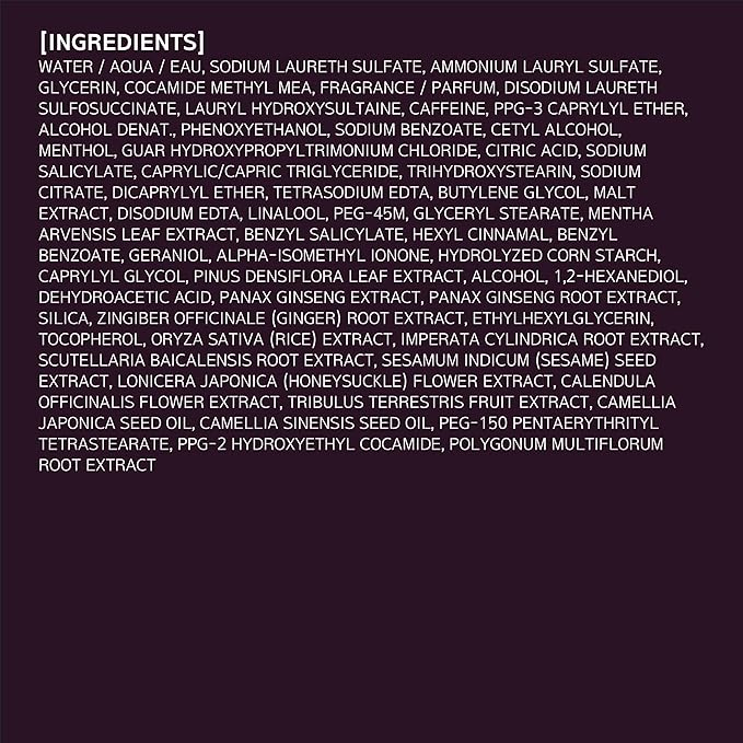 - A specialized technology to combine Ginseng extract from whole ginseng(root, stem, leaf, fruit) harvested in June when its active ingredients reach their peak. The leaf and stem(above the ground) have over seven times higher key ingredients providing nourishment to the scalp and hair than the roots(underground)