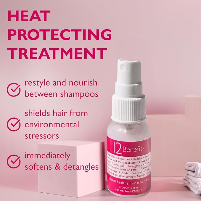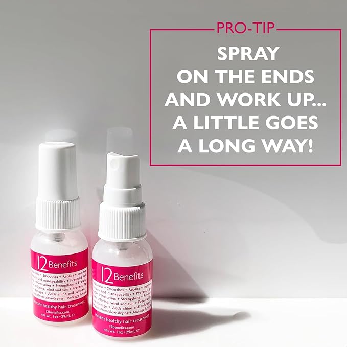 12 Benefits Instant Healthy Hair Treatment - Leave In Conditioner Travel Size Spray, Quaternium 39 & Silk Fibre Protein - Smooths Frizz, Strengthens & Repairs Damaged Hair, (1 Fl Oz)