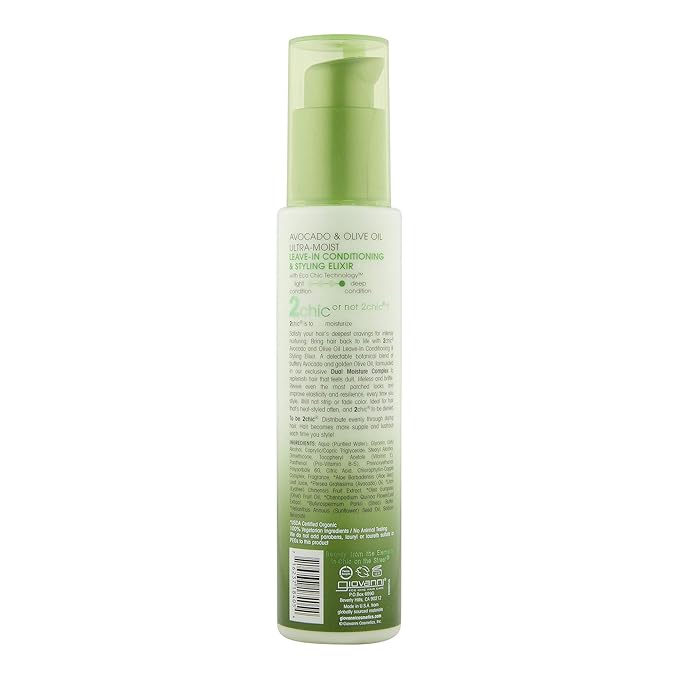 - MOISTURIZING HAIR CARE - 2chic Ultra-Moist Leave-In Conditioning & Styling Elixir is powered by our Dual Moisture mix of Avocado and Olive Oil that helps add significant moisture and strength for healthier and lustrous locks that you can style with ease
