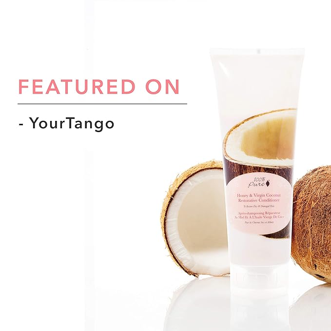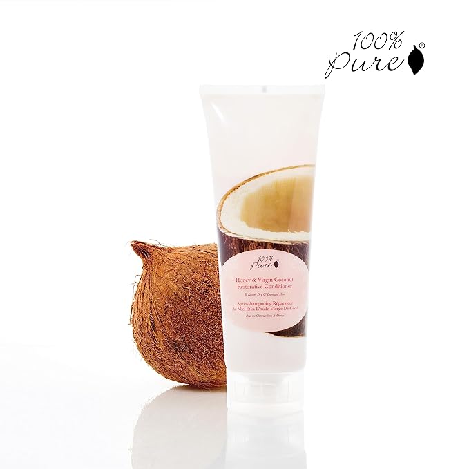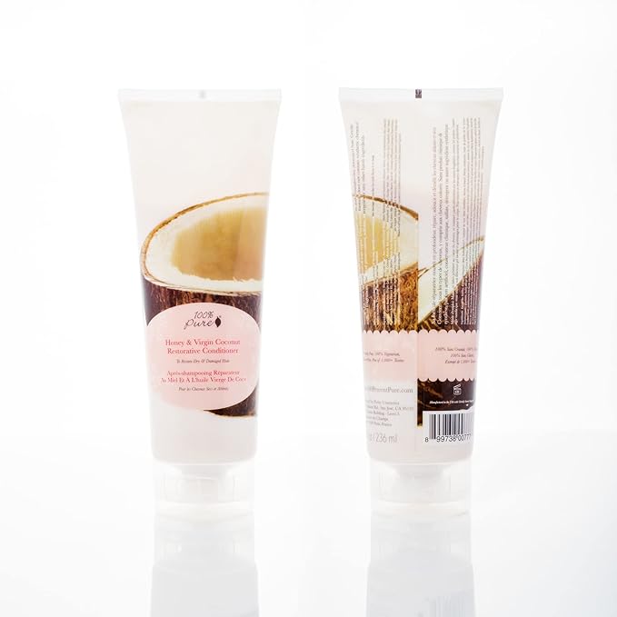 100% PURE Honey & Virgin Coconut Restorative Conditioner Moisturizer & Repair Replenishing Nutrient Boost for Dry Damaged Hair, Promotes Healthy Growth for Women & Men - Sulfate Free - 8 Fl Oz