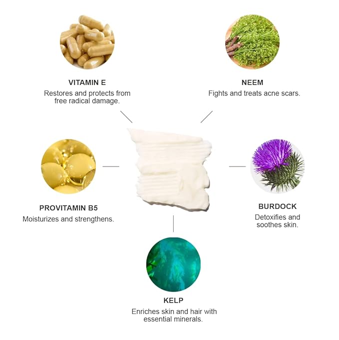 - REVIVAL ESSENTIALS - Locks in moisture and enriches skin and hair with essential minerals from kelp; nourishing herbs and botanicals, burdock, neem, and nettle detoxify and calm skin helping unclog product and oil buildup promoting healthy growth.