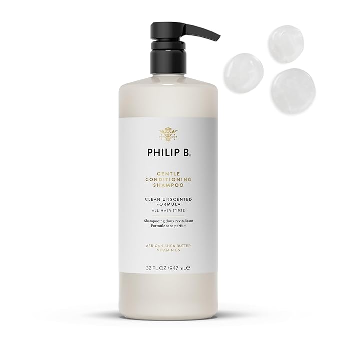 PHILIP B Gentle Conditioning Shampoo, 32 fl. oz. (947 ml) - Light-Weight Unscented Cleanser Adds Softness & Shine, With Shea Butter & Vitamin B5
