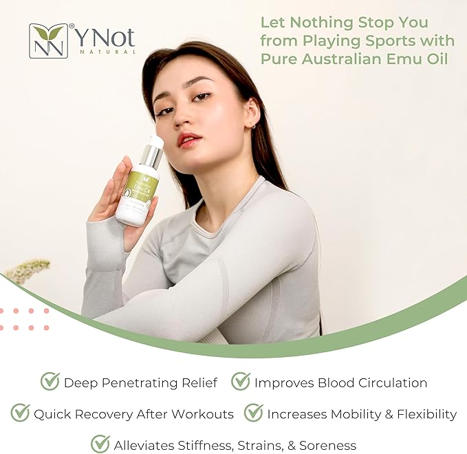 Sports Oil Muscle Rub with Pure Emu Oil, Omega 3 6 9, Tea Tree, Vitamin E, & Essential Oils - 100ml Oil Soothing for Muscle Stiffness & Skin Discomfort by Y-Not Natural