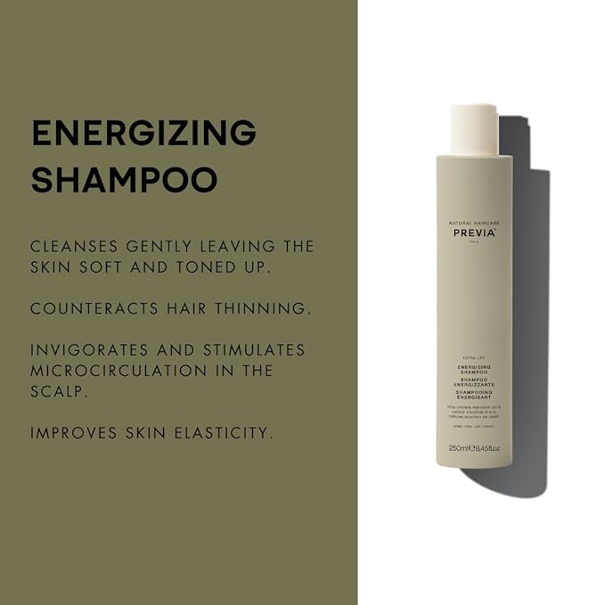- Energizing Scalp Treatment: PREVIA Energizing Shampoo, ideal for thin hair, improves scalp circulation and nourishes follicles. Achieve thicker, fuller hair with this hair thickening shampoo, providing professional results and renewed confidence through mindful hair care