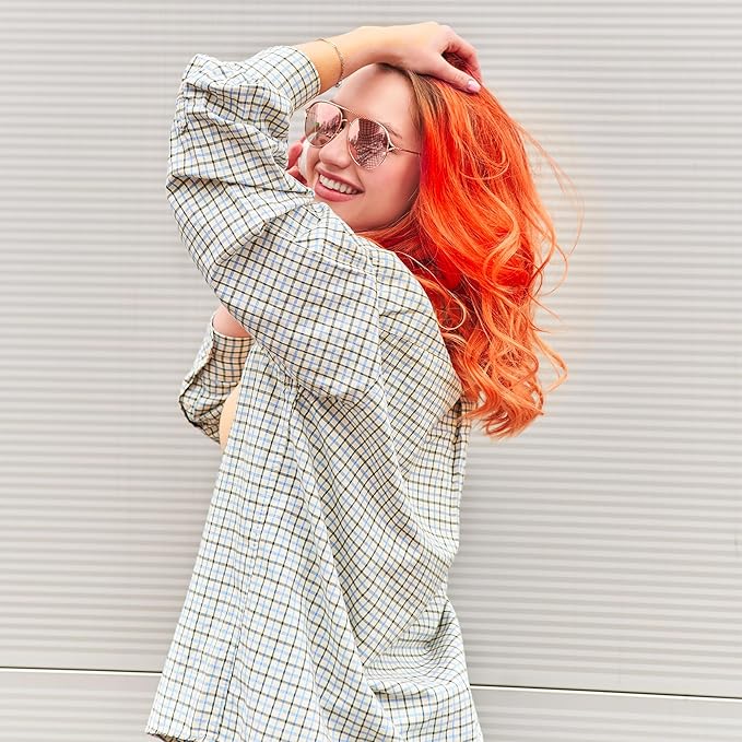 - Is it hot in here or is it just you?! Sunset Orange is a fiery, deep red-orange that turns out well on a more medium blonde! Brassy tones won’t cause any problems for this color. Since it’s primarily red-based, the red undertones of Sunset Orange may come through more strongly on hair that is more of a light blonde, around a level 9 or lighter.