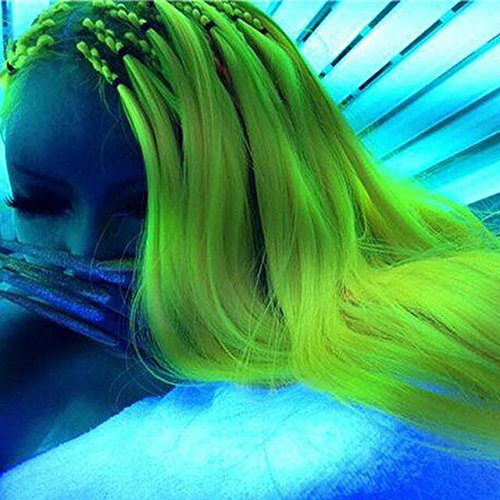 - Electrify your look with one of our faves, Neon Moon. This out of this world shade is a bright, vibrant neon yellow that glows under blacklight. Like our other UV reactive neons, Neon Moon will only show up on hair that is pre-lightened to a level 9 or 10. Neon Moon plays great with our other shades. A few of our favorite recipes: Try adding a couple drops Iris Green for a neon lime shade, or a few drops of Virgin Pink for a bright rose gold.