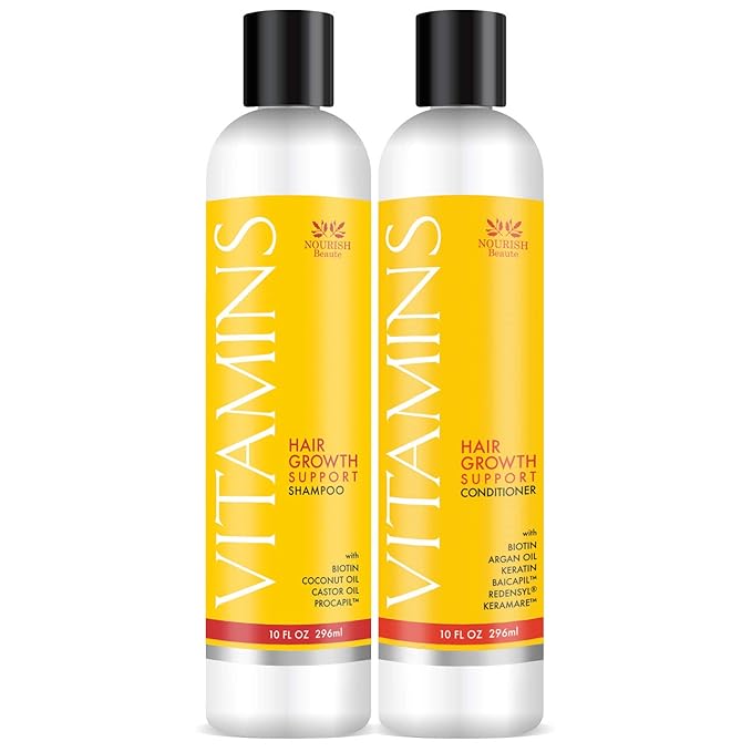 Nourish Beaute Vitamins Natural Shampoo and Conditioner for Hair Growth and Hair Loss for Hair Regrowth,Volume and Thickening with Biotin,DHT Blockers,No Sulfate, For Men and Women, 2 Pk