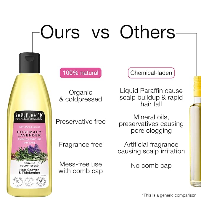 - FOR STRONG AND LUSTROUS HAIR: The Soulflower Castor Rosemary Hair Growth Oil nourishes and moisturizes dry hair, controls sebum, maintains a healthy scalp, improves hair texture, controls dandruff, and strengthens hair. The high-nutrient Soulflower Castor Rosemary Oil promotes a healthy scalp and long, thick, and lustrous hair.