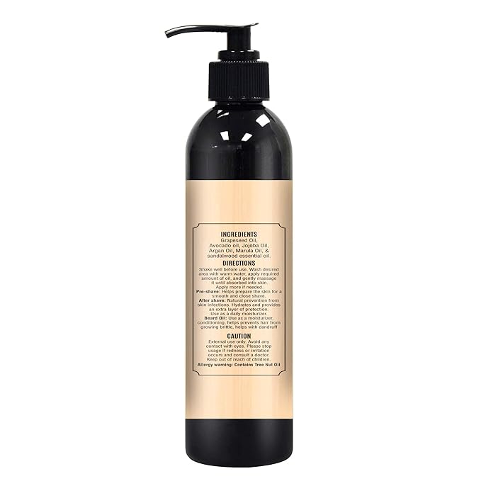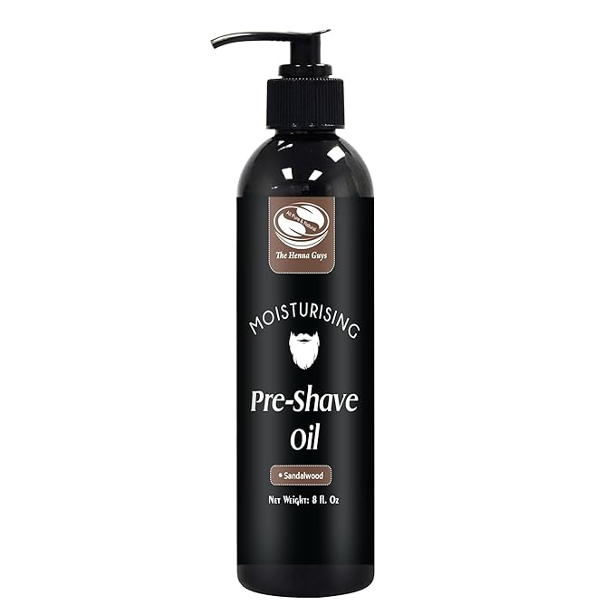 The Henna Guys 8 fl. Oz Pre-Shave & Beard Conditioning Oil for Men, Sandalwood Scent, with Jojoba, Argan, & Marula Oils, Free from Ammonia, Sulfate, Phthalate