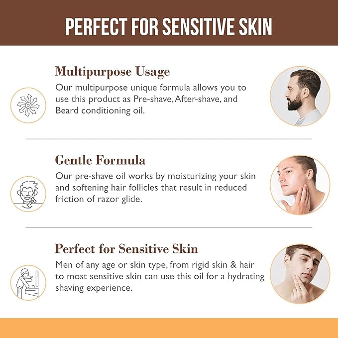 - ✅ WHY PRE SHAVE OIL: Our pre shave oil is formulated with naturally moisturizing, skin & hair loving oils like jojoba oil, grapeseed oil and avocado oil, our special formula ensures oil consistency & texture is not too thin that it does not create enough gliding or not too thick that it clogs the razors.