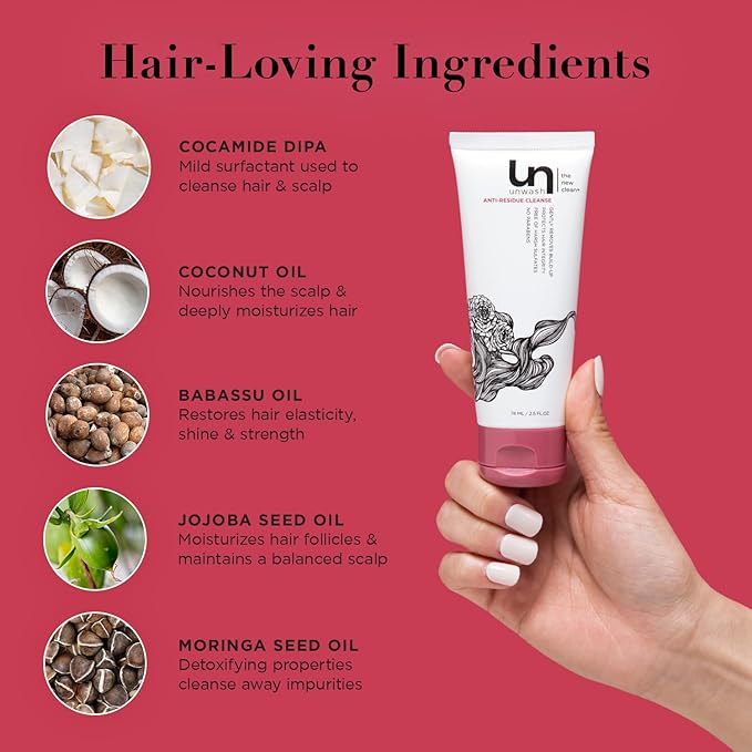 unwash Anti Residue Hair Cleanser: Gentle pH Balanced Clarifying Shampoo, Removes Build-up, Moisture Balancing, Hair Detox, 2.5 Fl oz (1 Pack)