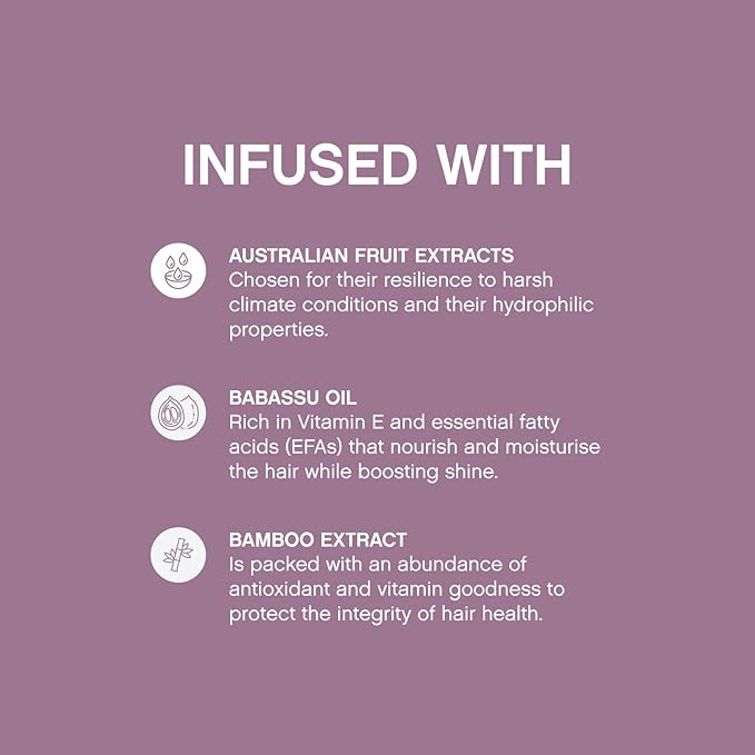 - Shine & Repair Hair Shimmer: This hair shimmer spray utilises Australian Fruit Extracts and Babassu Oil to nourish and revitalise, while counteracting yellow tones