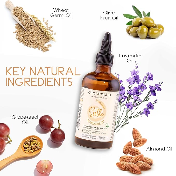 Afrocenchix Soothe Scalp Oil – Growth Oil Treatment for Afro & Curly Hair – Itchy Scalp Relief, Moisture, Vegan – 100ml