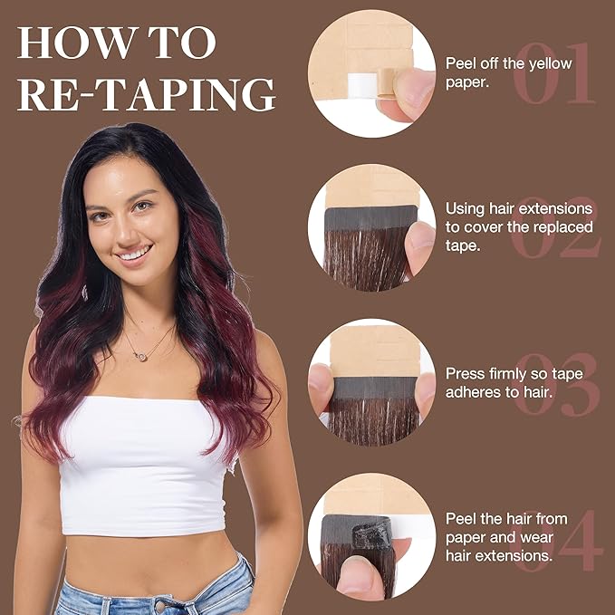 - Strong & Gentle Tape: Waterproof, hypoallergenic tape that's gentle on hair and skin. Strengthens with slight heat for a secure fit. Lasts 4–6 weeks per use. Easy to apply and remove without damage. Reusable for 3–4 months with proper care.