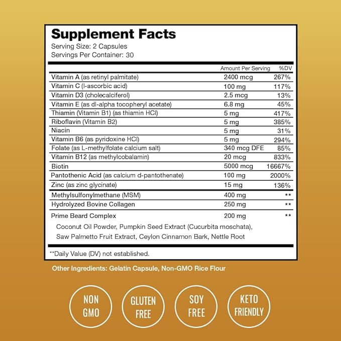 - Address the Root Issue from Within - Fill the gaps that are missing from your diet. Creams and Beard Oils can help you from the outside, but the root issue comes down to an internal nutrient deficiency. And that’s where Prime Beard steps in.