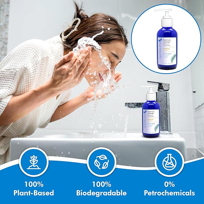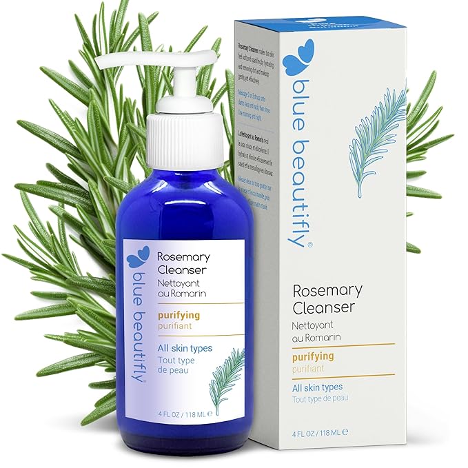 Blue Beautifly Rosemary Deep Pore Cleanser - Removes Dirt, Pollutants, & Makeup - No Sulfates, SLS, PEGs, Toxins, or Synthetics - Plant-based, Hypoallergenic, Dermatologically Tested - 4 fl oz