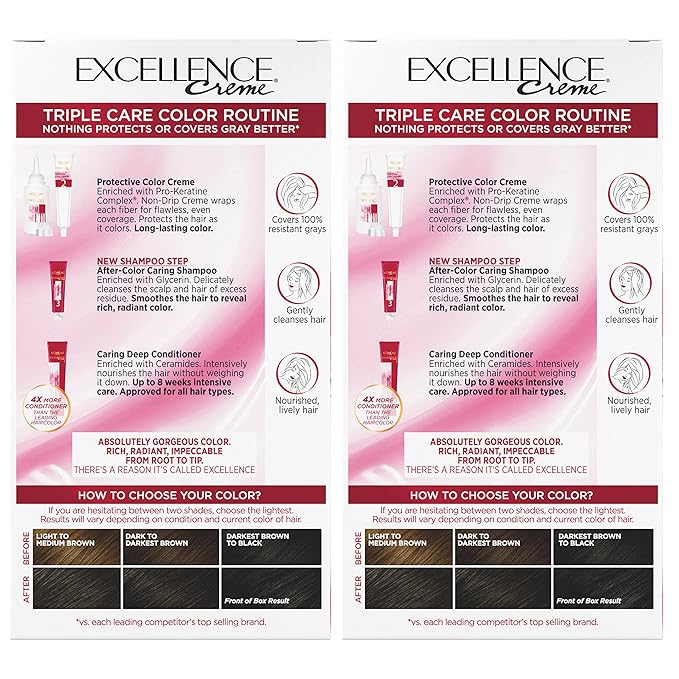 - Gray Coverage Hair Color With Triple Protection: No hair color cares more than Excellence Crème; With our triple protection system that seals, replenishes and conditions, plus 100 percent gray coverage even on stubborn grays.