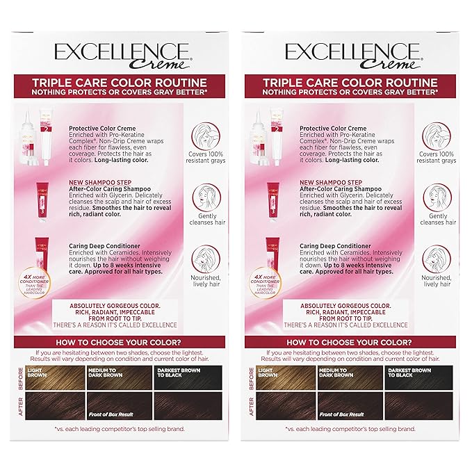 - Gray Coverage Hair Color With Triple Protection: No hair color cares more than Excellence Crème; With our triple protection system that seals, replenishes and conditions, plus 100 percent gray coverage even on stubborn grays.