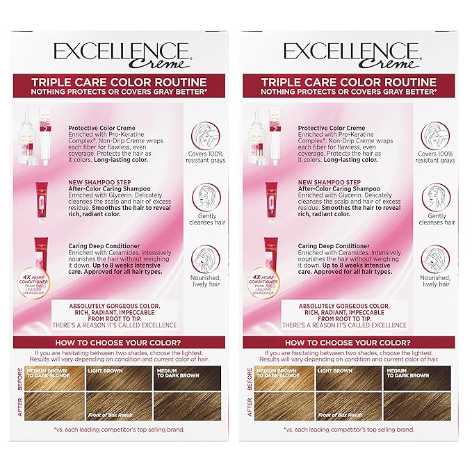 - Gray Coverage Hair Color With Triple Protection: No hair color cares more than Excellence Crème; With our triple protection system that seals, replenishes and conditions, plus 100 percent gray coverage even on stubborn grays.
