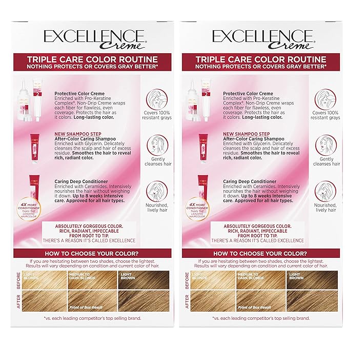 - Gray Coverage Hair Color With Triple Protection: No hair color cares more than Excellence Crème; With our triple protection system that seals, replenishes and conditions, plus 100 percent gray coverage even on stubborn grays.
