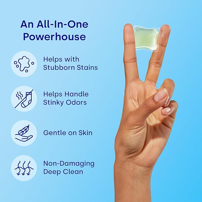 - TARGETED ODOR ELIMINATION & POWERFUL STAIN REMOVAL: Our detergent pods are expertly crafted with five specialized enzymes to combat stubborn stains and innovative malodor technology to eliminate unpleasant odors. Ideal for everyday fabrics such as cotton, athletic wear, and polyester. Elevate your laundry experience with our carefully curated fragrances—free from overpowering perfumes.