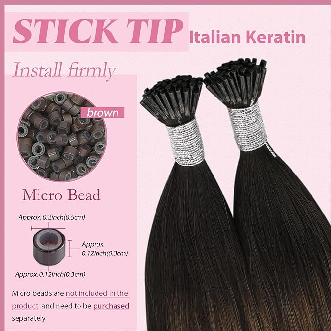 YoungSee I Tip Hair Extensions Human Hair Brown Itip Hair Extensions Balayage Dark Brown with Medium Brown Tip Hair Extension 16 Inch Ombre Cold Fusion Hair Extension Invisible for Adults 50g 80s
