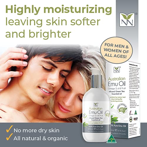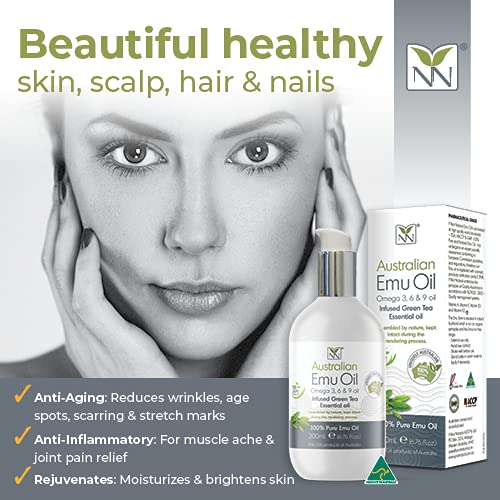 Y-Not Natural Ultra Pure Australian Emu Oil - Luxury, Hospital Grade Emu Oil 200mL | Free Range Aboriginal Omega 3, 6 & 9 Oil Infused with Green Tea - The Ultimate Moisturizer for Skin, Hair, Nails, and Scalp