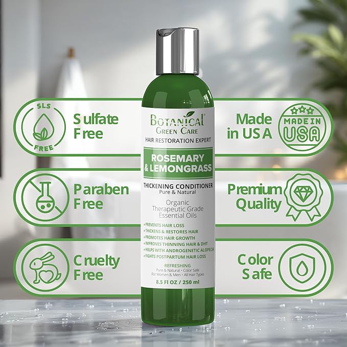 Rosemary & Lemongrass Conditioner for Thinning Hair, Thickening Product for Women and Men, Hair Growth