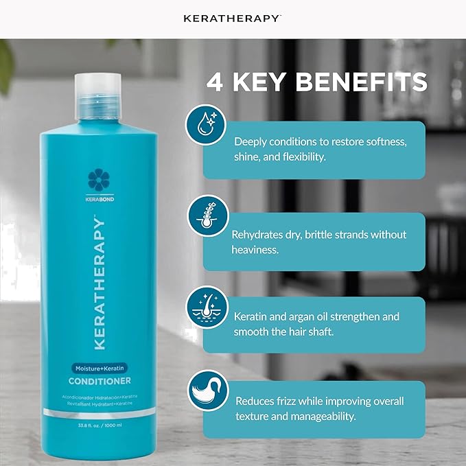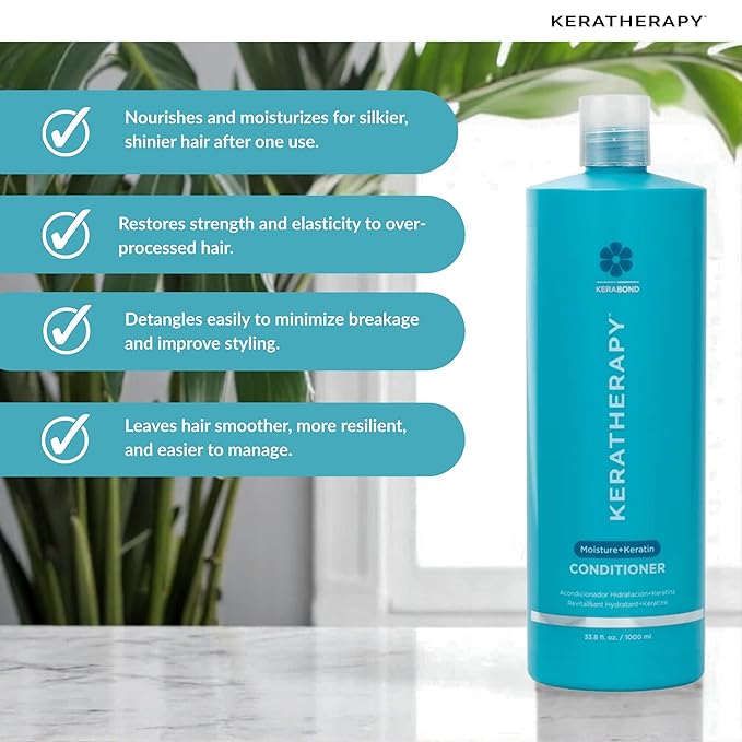 - Easy to Use - Work your Keratin Infused Moisture Conditioner through mid-lengths to ends of your hair, focusing on those areas that need more conditioning; Leave in for 3-4 minutes before rinsing; For the best results, use after Keratherapy Moisture Shampoo