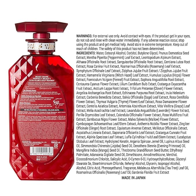 Moist Diane Keratin Hair Treatment for Hair Fall & Thin Hair Women & Men, Organic Hair Care with Argan Oil & Biotin from Japan, Silicone & Sulfate Free, EXTRA VOLUME & SCALP, 15.2 Fl Oz