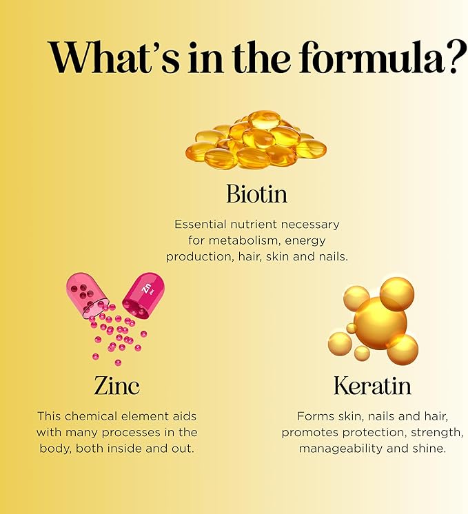 - Head to Toe Benefits - Count on us for all your beauty needs with our proprietary hair and nails vitamins for women for stronger faster growing and flaunt worthy hair and nails plus glowing skin