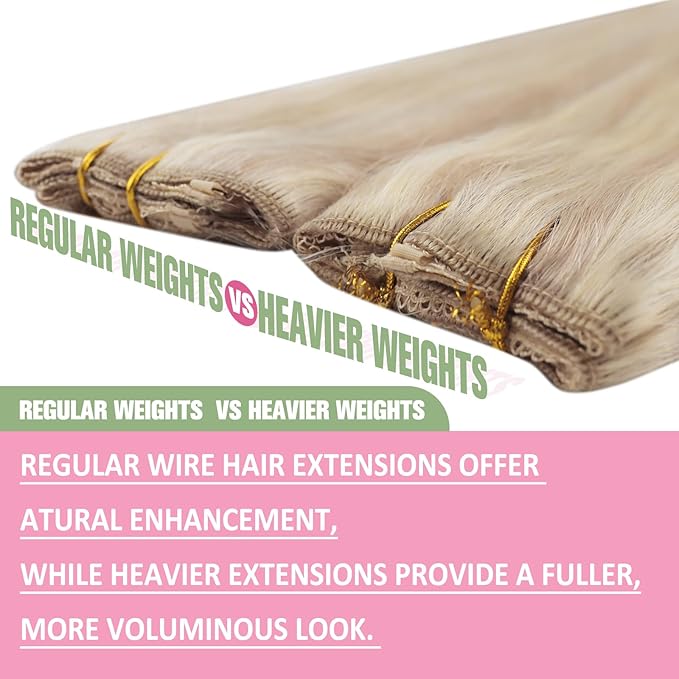 YoungSee Wire Hair Extensions Blonde Highlights 14Inch 80Gram Invisible Wire Hair Extensions Real Human Hair Ash Blonde with Bleach Blonde Fish Line Hair Extensions with Clips