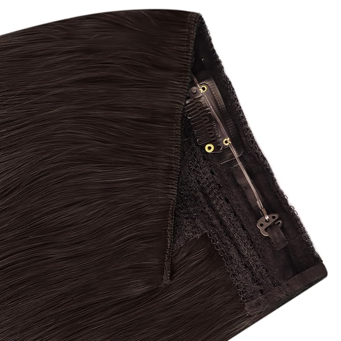 YoungSee Wire Hair Extensions Brown Invisible Wire Hair Extensions Real Human Hair Darkest Brown Crown Hair Extensions Human Hair with Trasparent Fish Line for All Styles 12In 70G