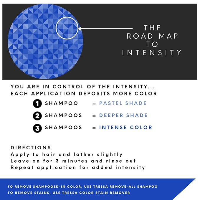 Watercolors by Tressa INTENSE 3-in-1 Color Depositing Shampoo, Semi Permanent Hair Color, Hair Dye Shampoo for Curly, Dry, and Normal Hair, 8 fl oz - BLUE