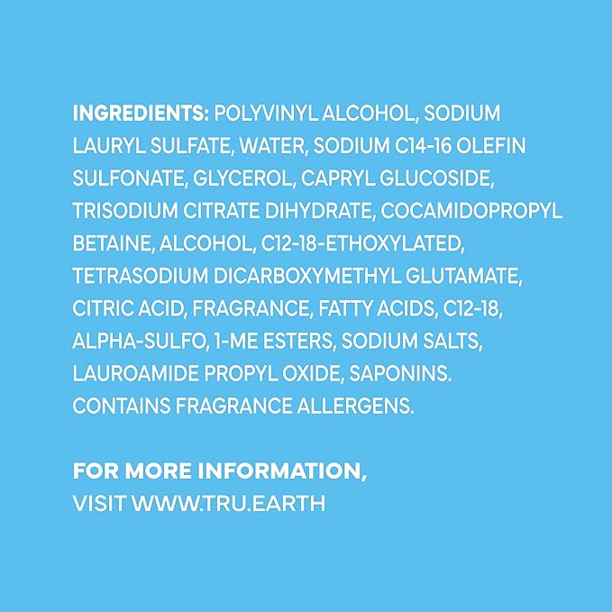 - NO MEASURING, NO MESS: Let’s face it. Traditional liquid laundry detergent can sometimes be messy, and takes up space. Measuring out detergent whether it is liquid or powder can result in spillage. With Tru Earth sheet laundry detergent, 1 strip equals 1 load - no measuring and nothing to spill.