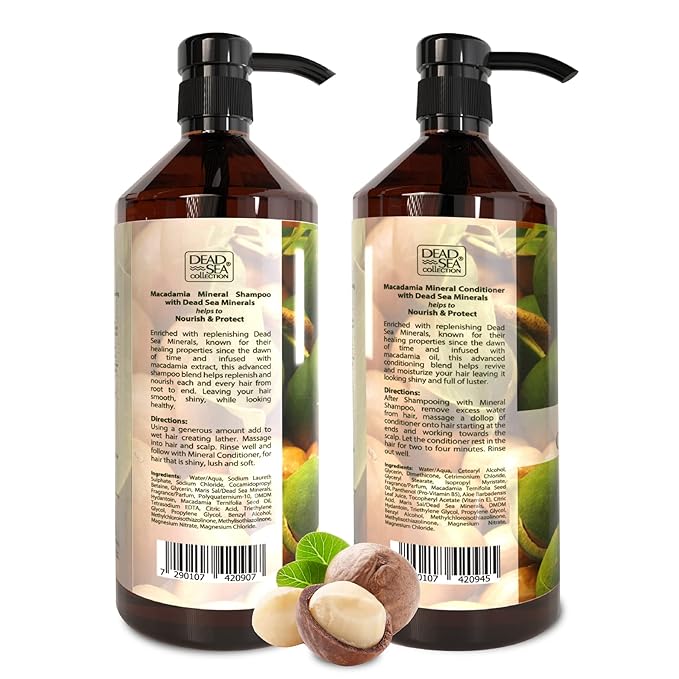 Dead Sea Collection Shampoo and Conditioner Set with Macadamia Oil – Hydrating Softening Hair Products with Dead Sea Minerals for All Hair Types – Set of 2 Bottles (33.8 & 30.6 Fl. Oz.)