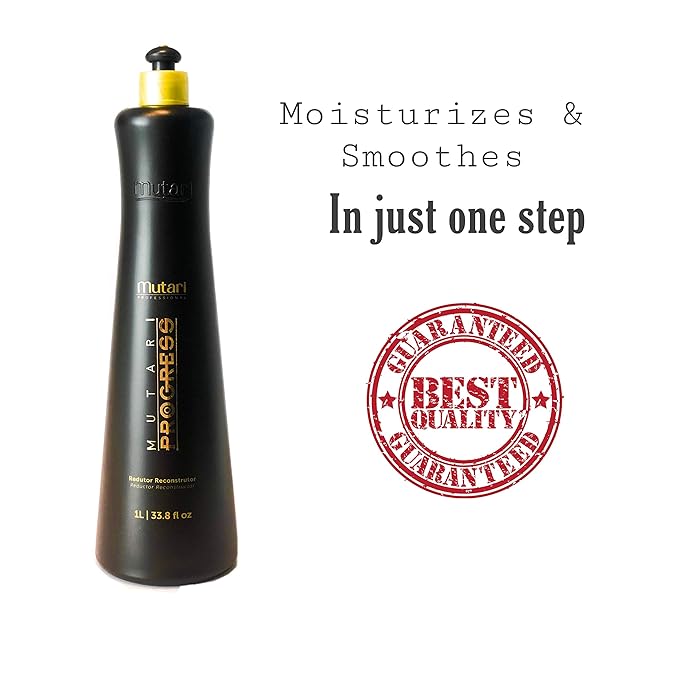 Mutari Professional Reductor Reconstructor Kit - Brazilian Keratin Straightening Treatment - Blowout Smoothing System With Pro Thermal 4 Brush And 1 Leather Bag - 33.8 fl oz