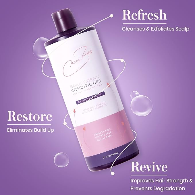 Nora Ross Garlic Extract Daily Moisturizing Conditioner with Argan Oil, Aloe & Chamomile Scent – Deep Conditioning for Smooth, Shiny Hair – Sulfate Free, Color Safe Formula for Women and Men – 32oz