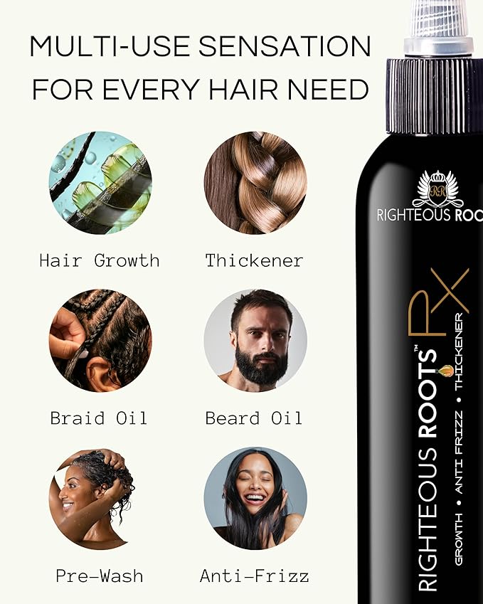 Righteous Roots Hair Oil for Hair Growth, Anti Frizz and Thickener (4 fl OZ, Pack of 2) - Best for Beard, Curly, Wavy and Natural Hair
