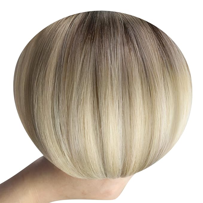 YoungSee Clip in Hair Extensions Real Human Hair Ombre Blonde Hair Extensions Clip ins Ombre Dark Brown Mix Blonde Balayage Natural Sheen Clip in Extensions Real Human Hair for Women 16Inch 120G