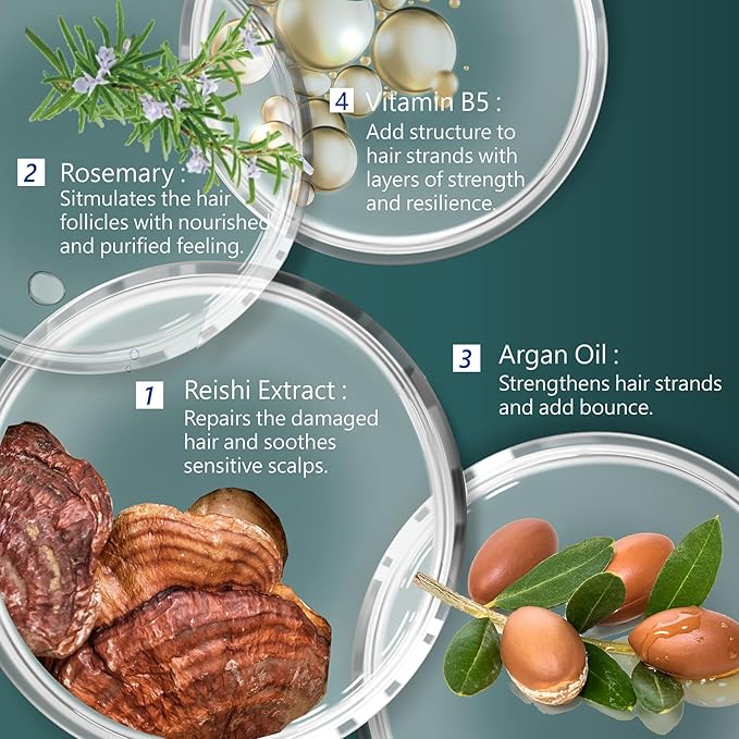 - 【Volume Amplifier】: Hair's fullness and health originate at the root. Natural Reishi Extract not only fortifies and mends damaged hair but also soothes sensitive scalps. Meanwhile, protein-enriched Argan Oil imparts vitality, adding a lively bounce to every strand.